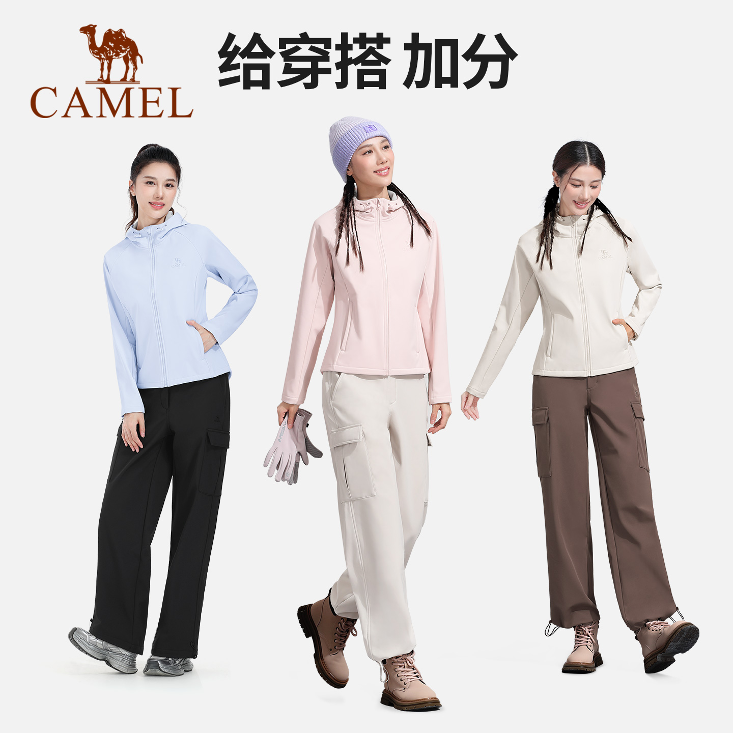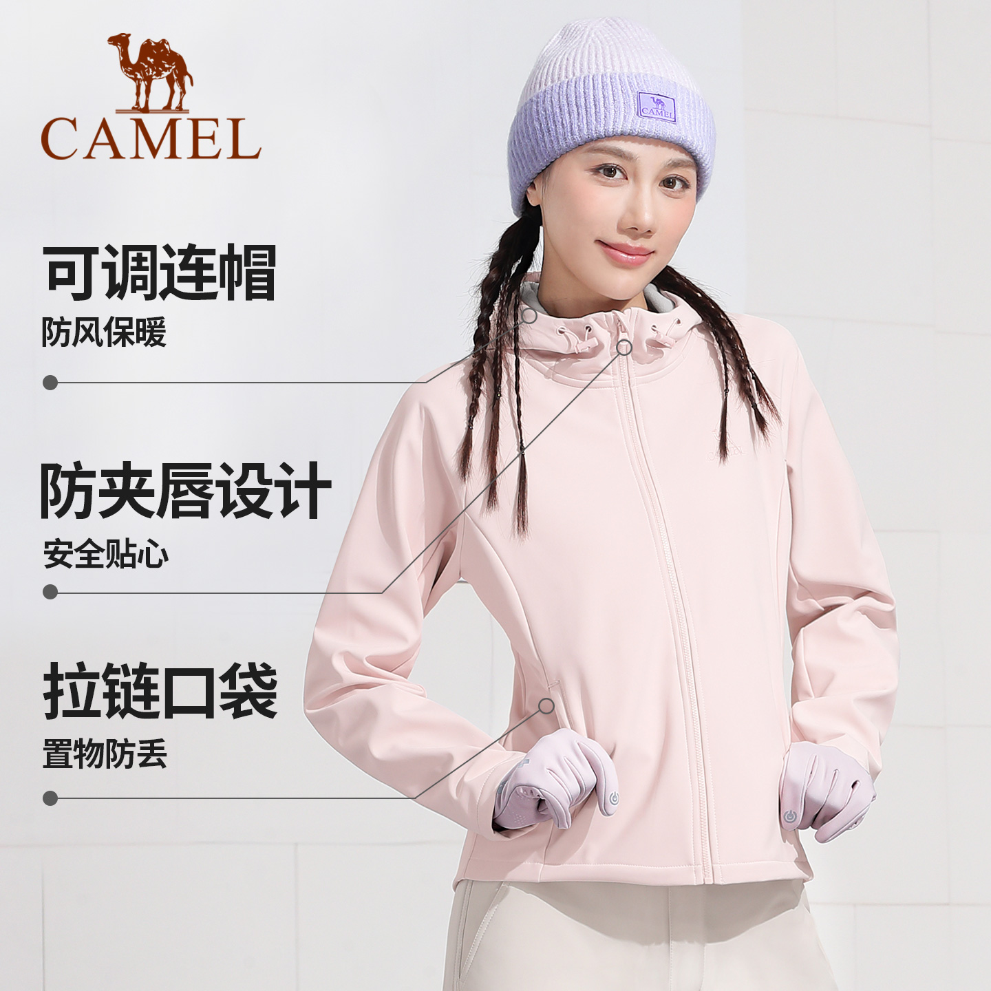 骆驼瑜伽服男女款秋冬季加绒运动服连帽外套防泼水防风户外软壳衣