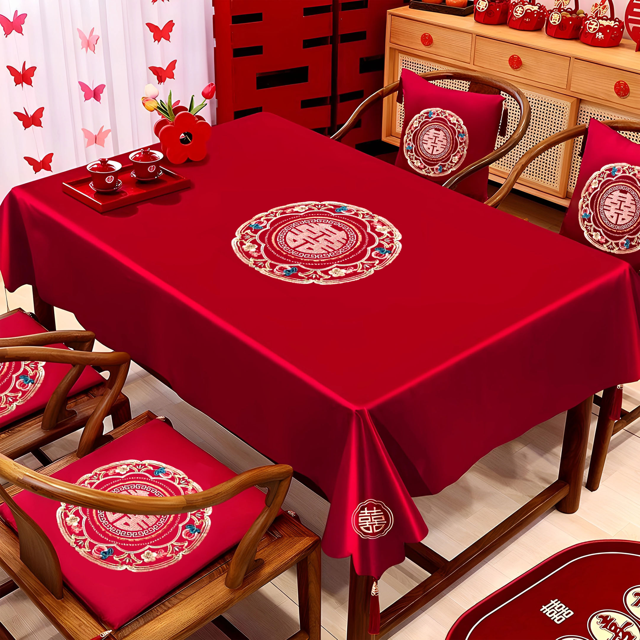 结婚茶几桌布喜字抱枕跪垫一对餐桌电视柜红盖布桌旗婚房布置装饰