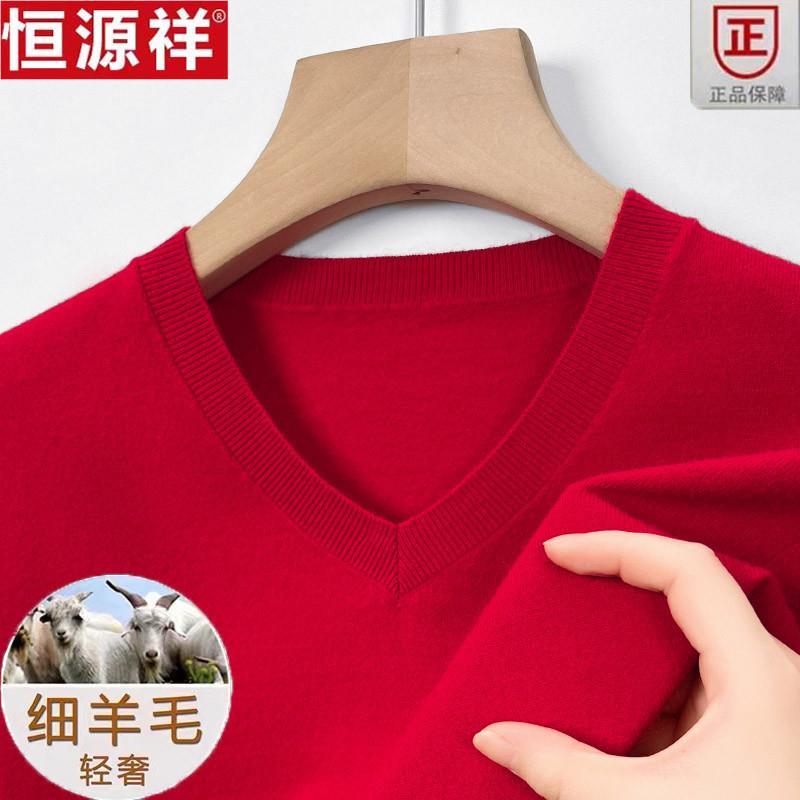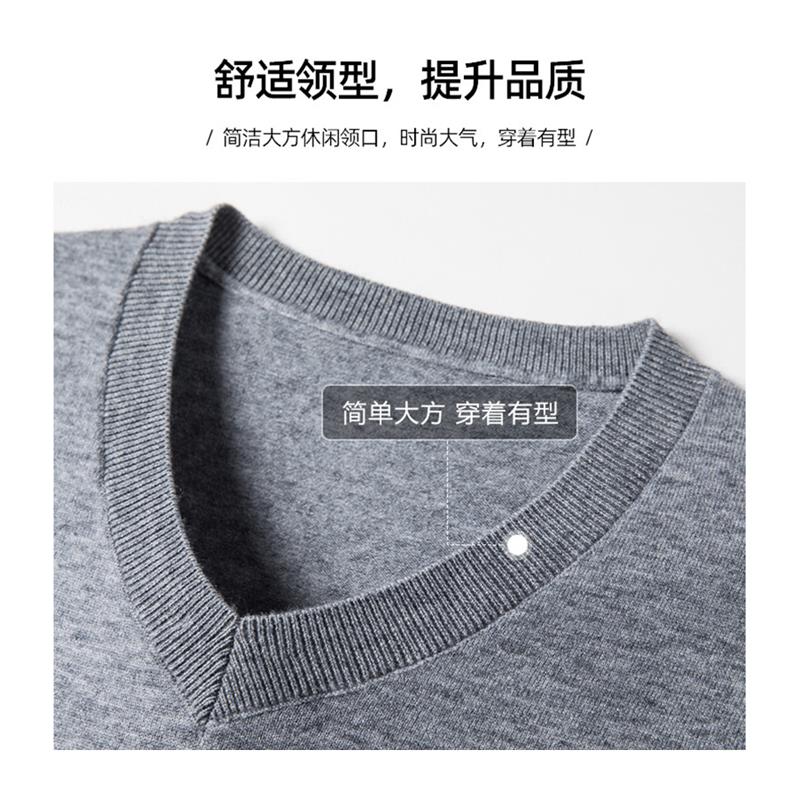 恒源祥秋冬V领羊毛衫男100%含羊毛中青年保暖毛衣休闲针织打底衫