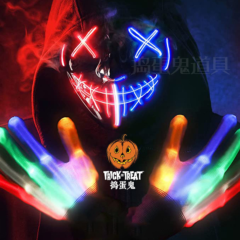 万圣节LED发光面具舞会夜装饰品派对聚会装扮鬼脸小丑拍照道具cos