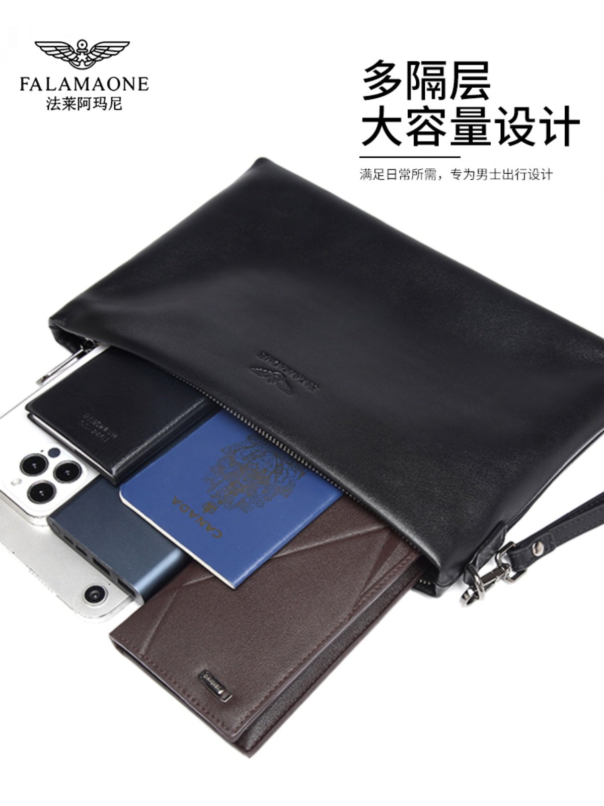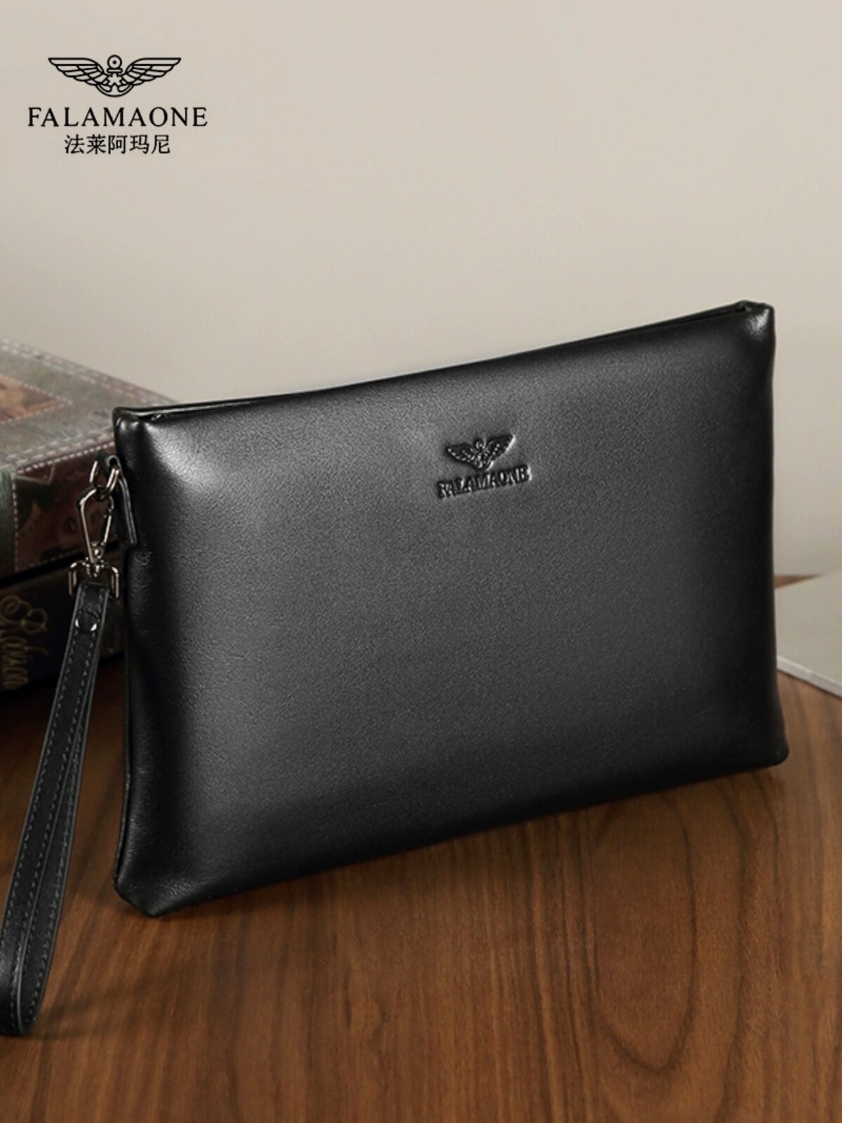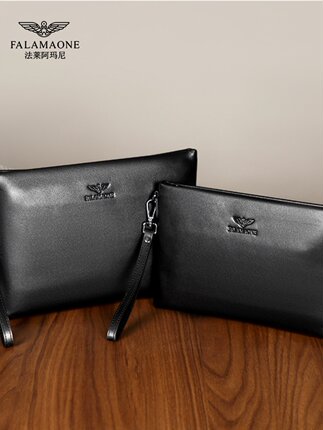 正品法莱阿玛尼男士手包真皮信封包青年牛皮拉链手拿包大容量夹包