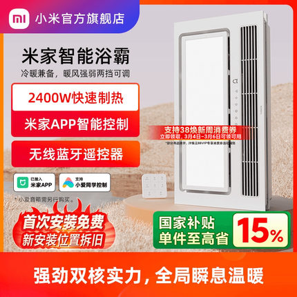 小米官旗米家智能浴霸风暖卫生间照明排气扇一体浴霸灯 花洒套装