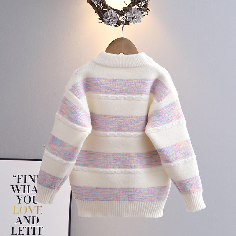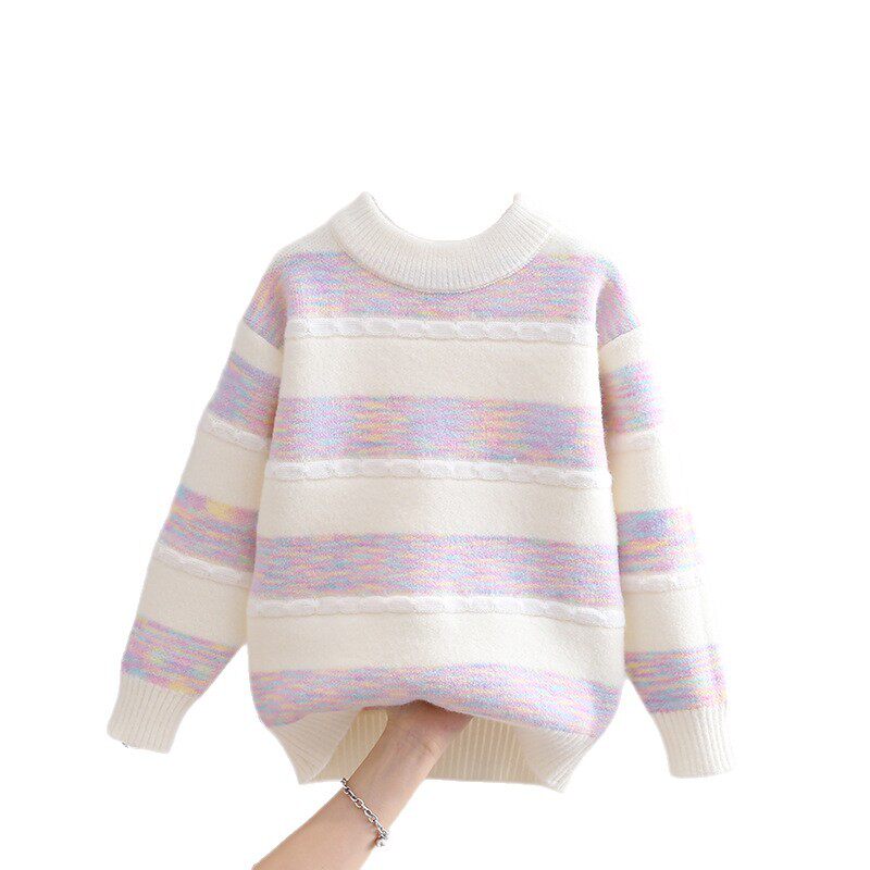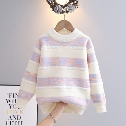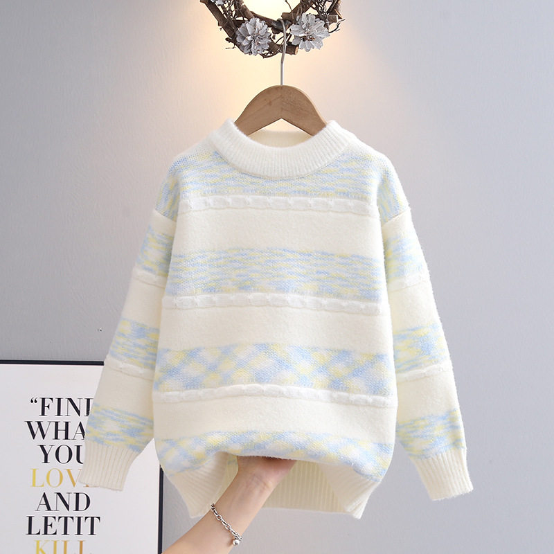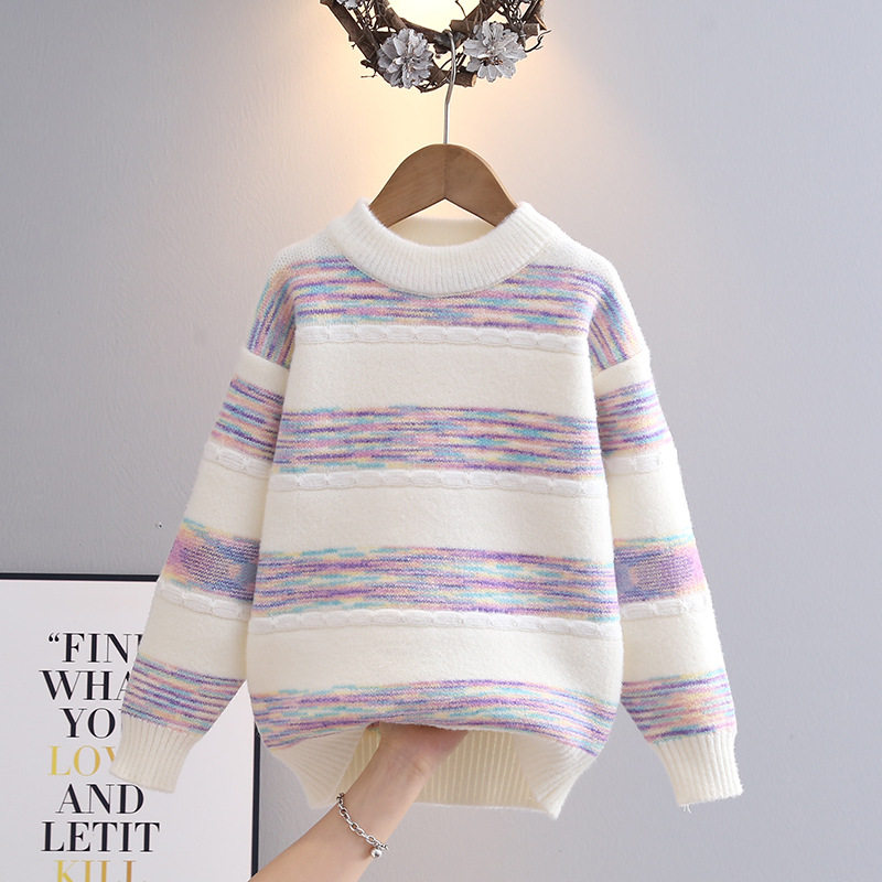 女童毛衣洋气打底衫2025秋冬新款韩版拼色儿童圆领上衣工厂批