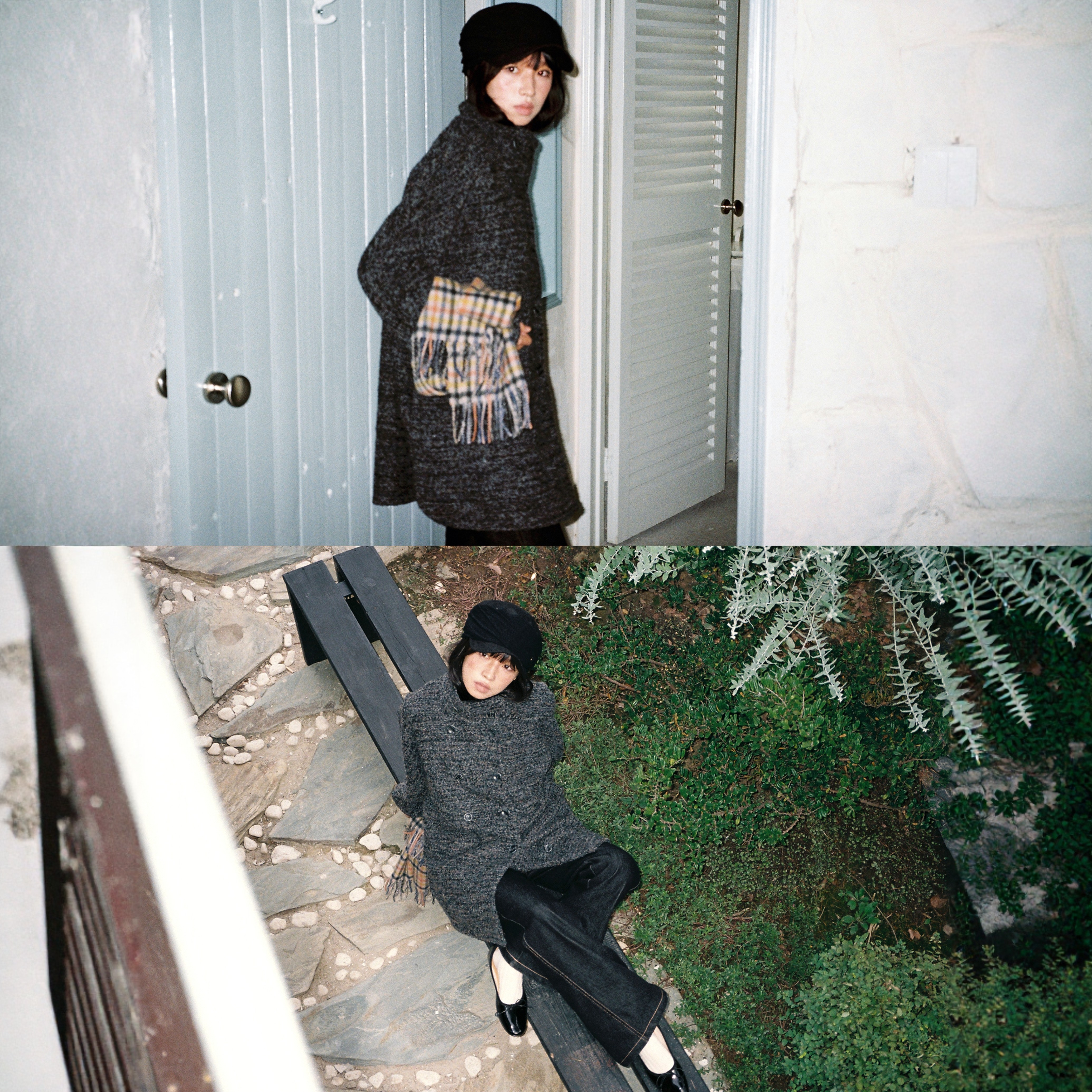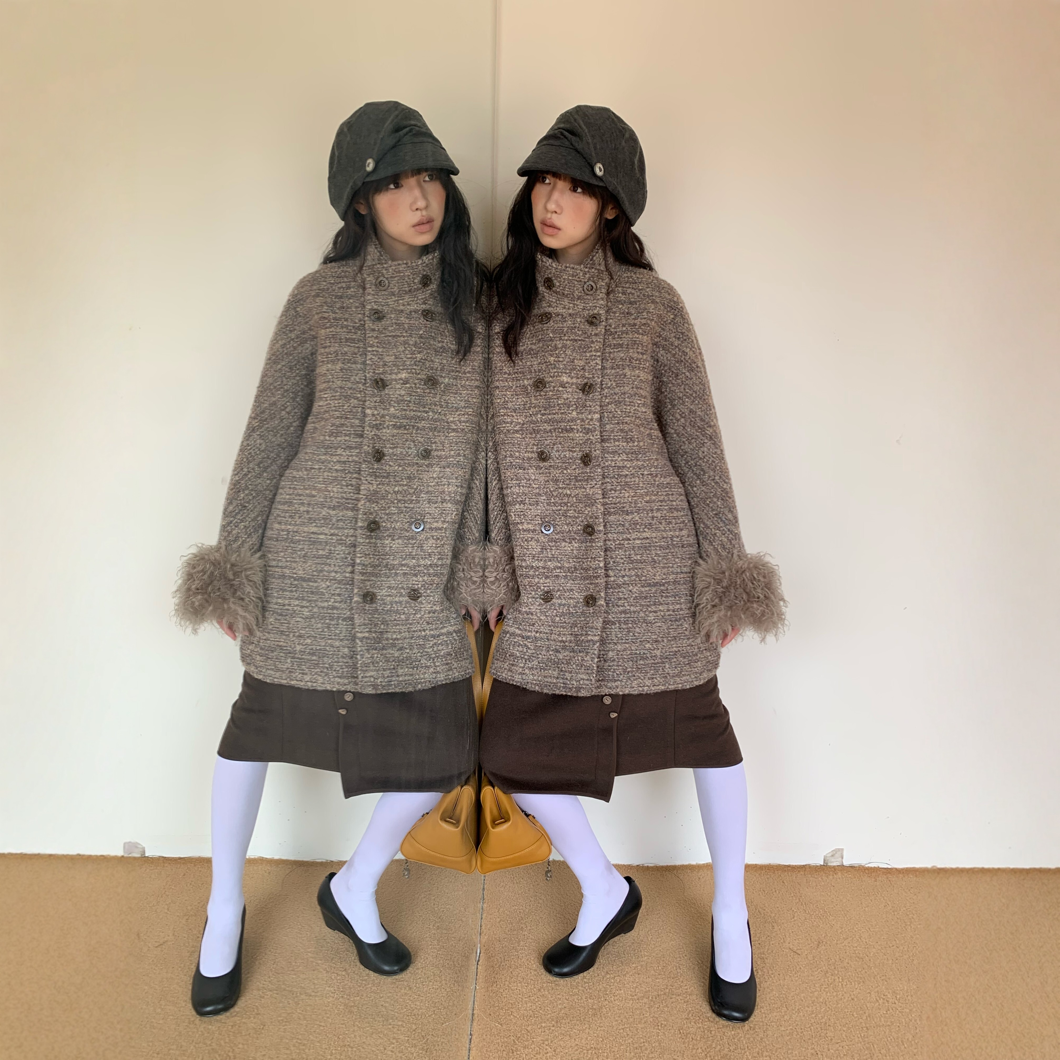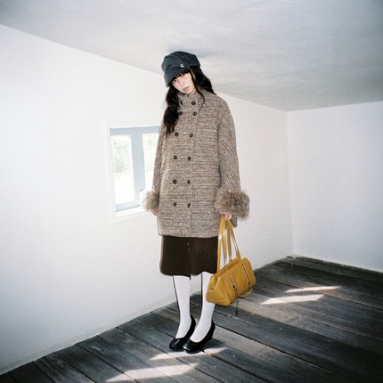 袖口毛毛圈圈羊毛中短款大衣