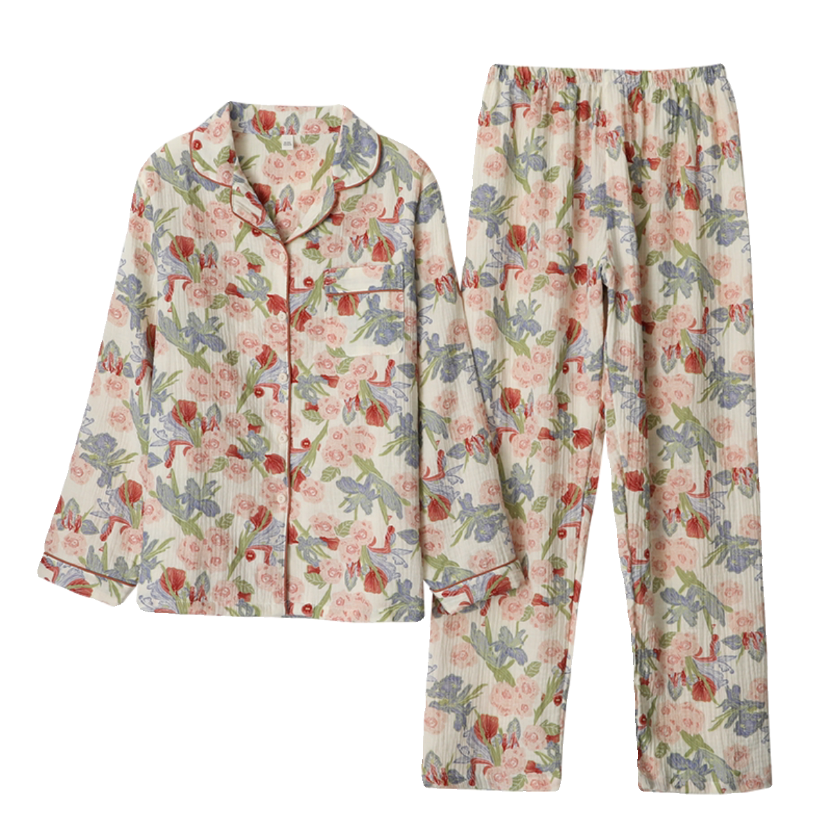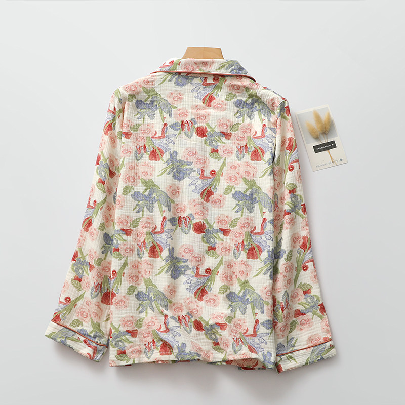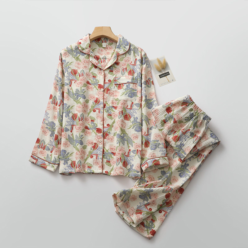 浪漫印花睡衣女纯棉纱日系翻领长袖长裤家居睡眠服春夏秋起居服薄