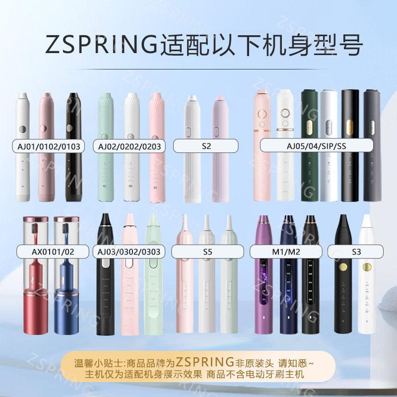 ZSPRING适配美的S1P/S5/M1/M2/MC-AJ0101/02030405/SS电动牙刷头