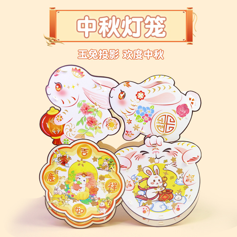 中秋节兔子灯笼2025新款玉兔手提花灯八月十五儿童手工diy材料包