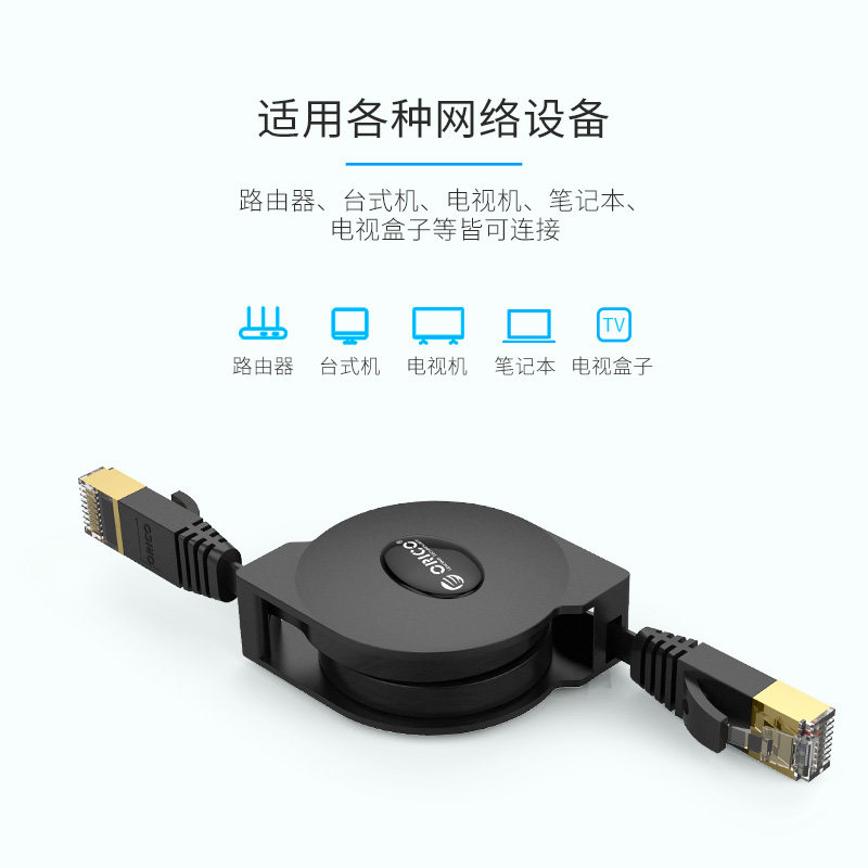 Orico/奥睿科 2米伸缩千兆网线光纤宽带电竞扁平高速纯铜八芯六类