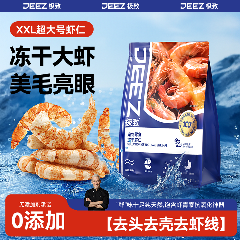 【JEEZ极致】南美白对大虾仁冻干猫咪零食虾青素营养发腮狗购通用