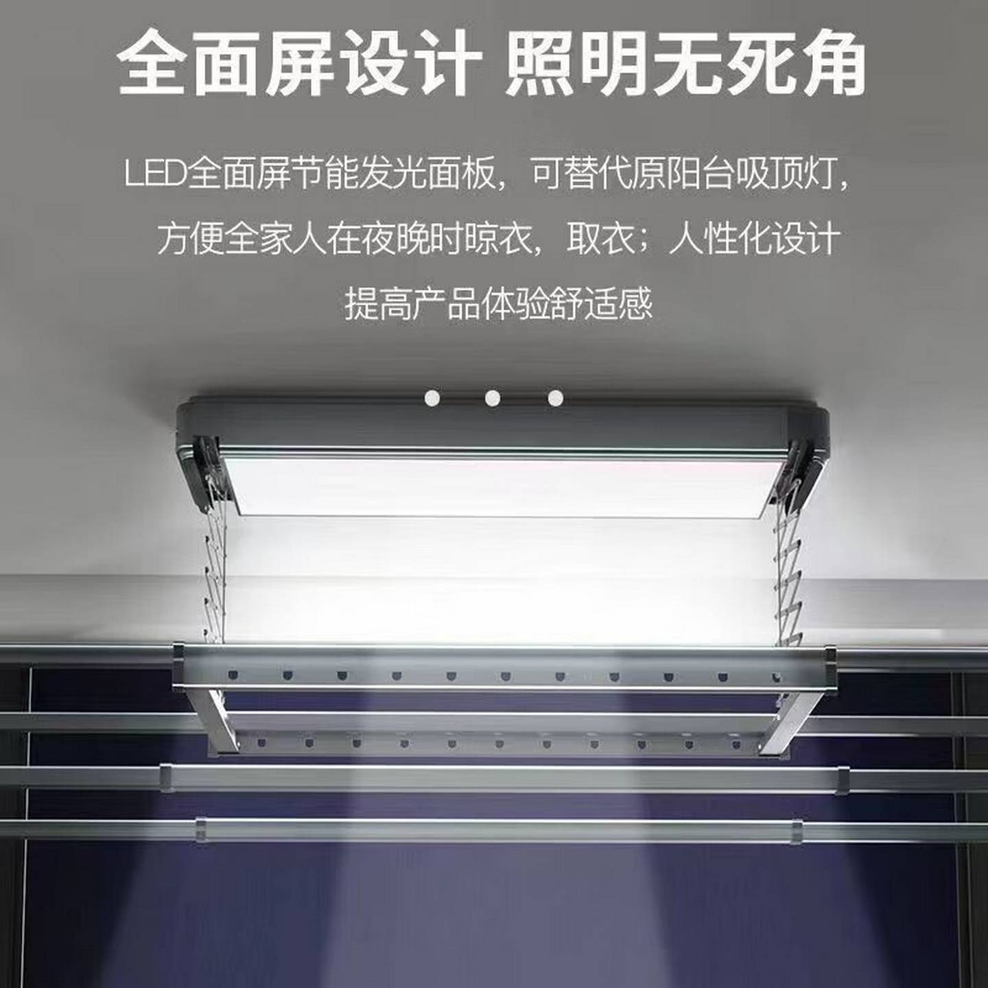 超薄电动晒衣架大屏照明遥控升降阳台隐形嵌入智能声控自动晾衣机