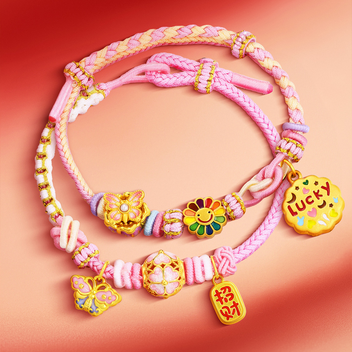 潮宏基蝶舞黄金吊坠蝴蝶珐琅足金挂坠串珠5D硬金九紫离火礼物