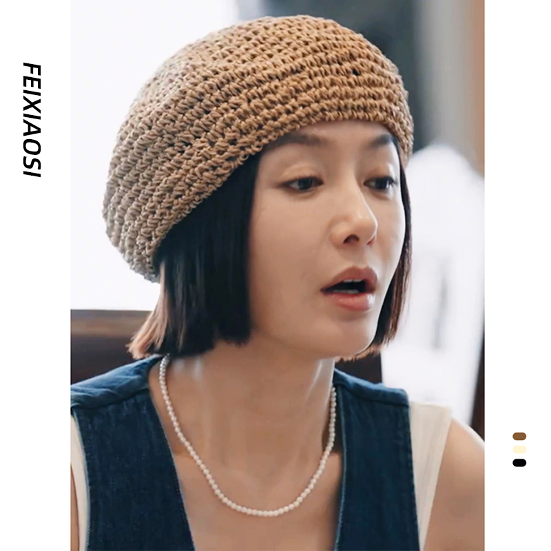 编织贝雷帽女款2025新款花少秦岚同款草帽夏款薄款透气画家帽出游