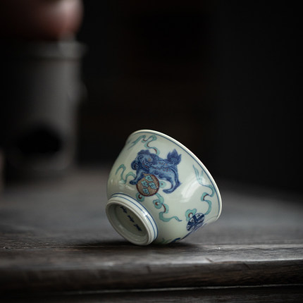 草木祠 仿古青花寿桃狮子绣球茶杯品茗杯主人杯个人客杯陶瓷茶具