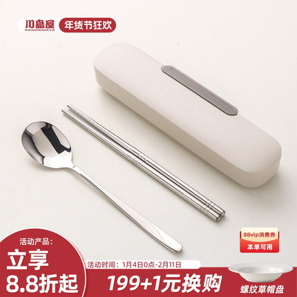 川岛屋不锈钢筷勺餐具便携收纳盒