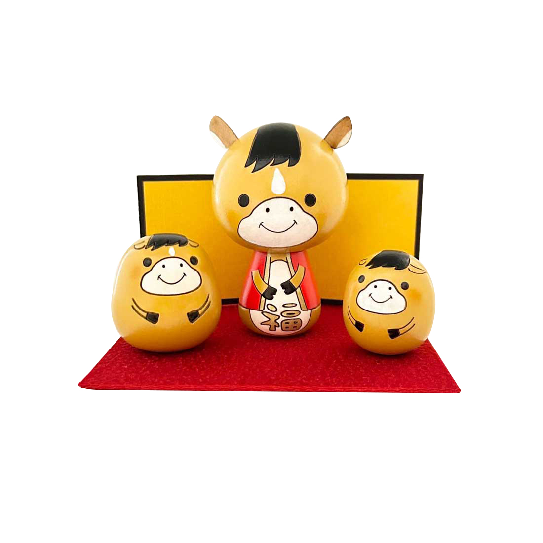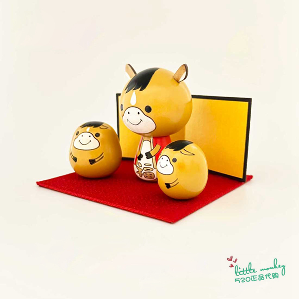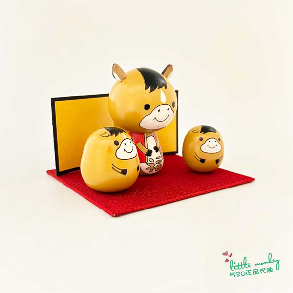 日本代购 2026年生肖马 职人手工制作 日式屏风招福木偶开运摆件