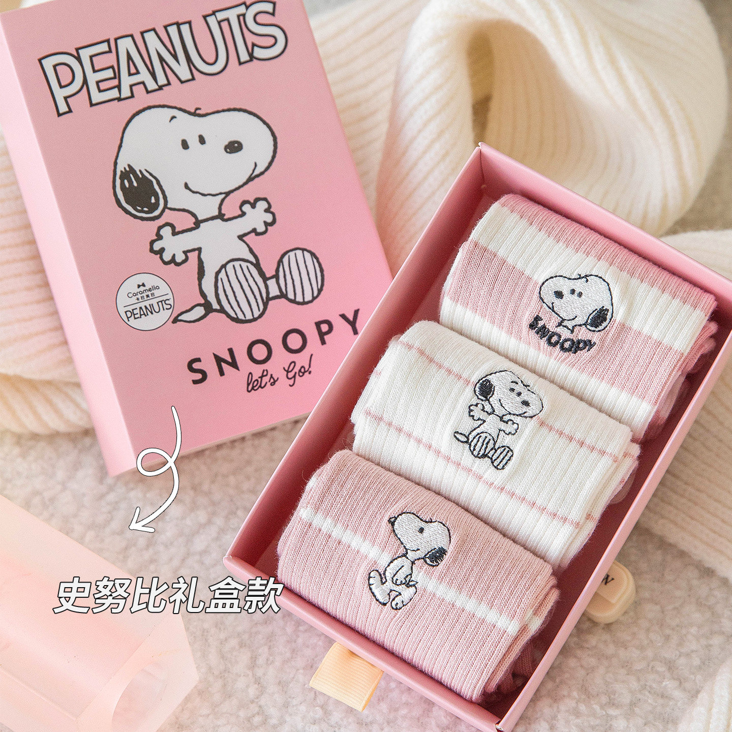 卡拉美拉史努比联名秋冬新款袜子双针礼盒棉袜韩系百搭少女中筒袜