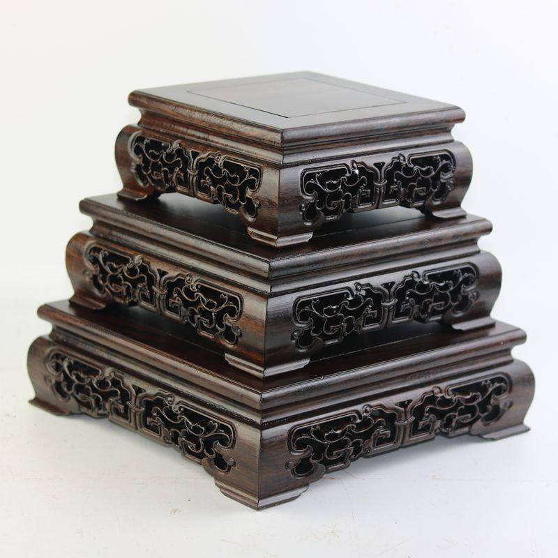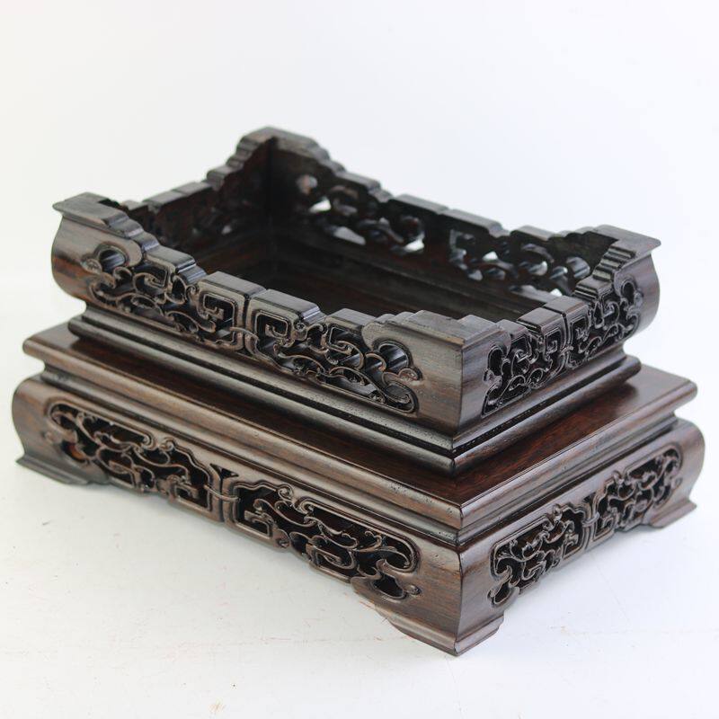 红木雕刻工艺品摆件底座浮雕鱼缸架实木佛像底座古董奇石展示架子