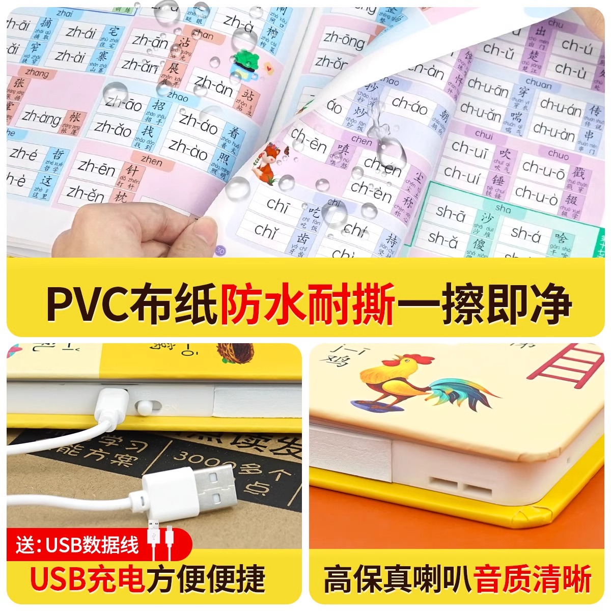 汉语拼音拼读训练点读发声书会说话的早教有声书读物幼儿园大班宝宝一年级拼音专项训练儿童启蒙幼小衔接教材趣味撕不烂学习机神器