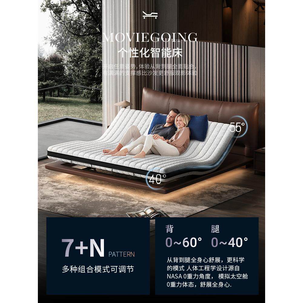 高端真皮悬浮主卧互不打扰多功能电动智能床双人大床升降床架婚UE