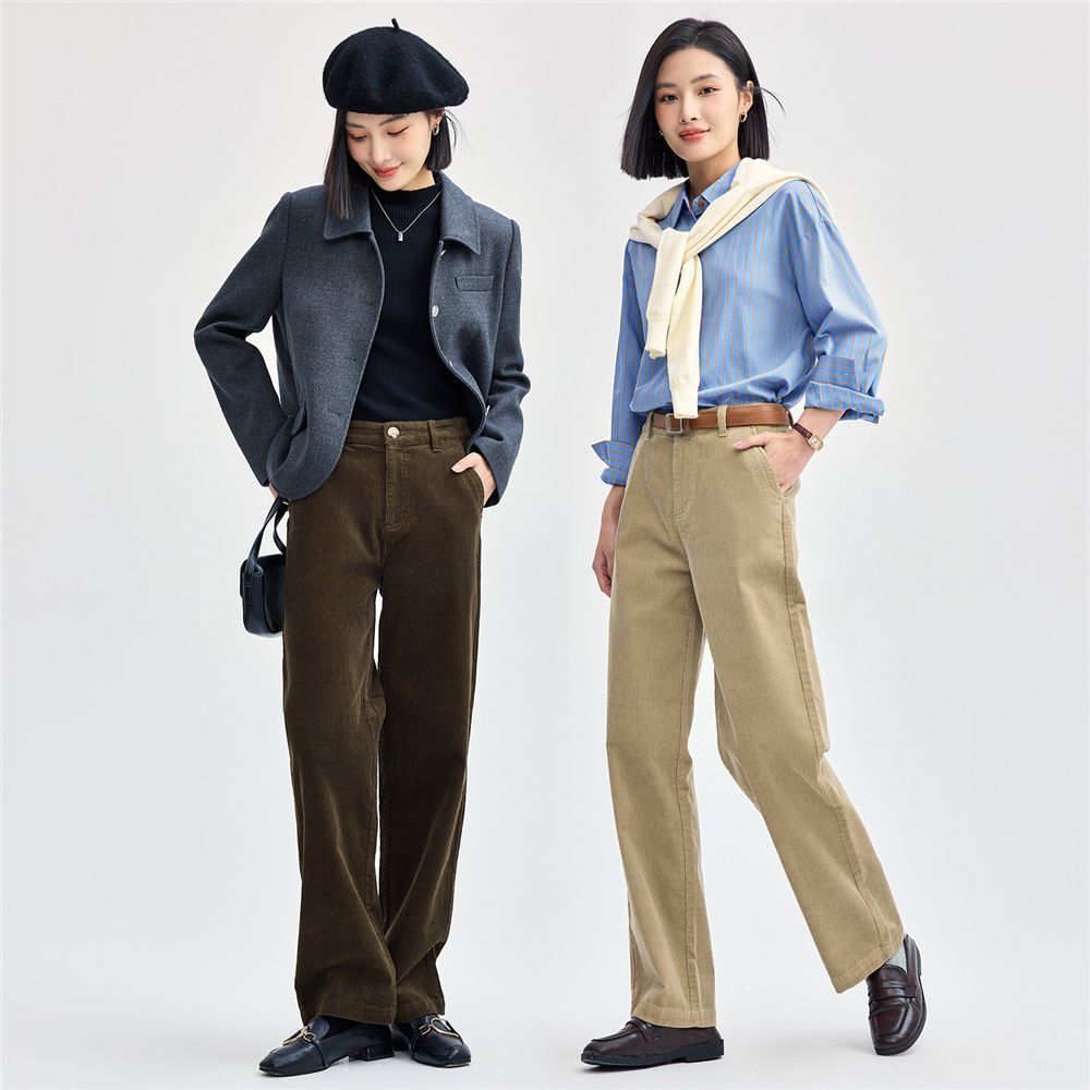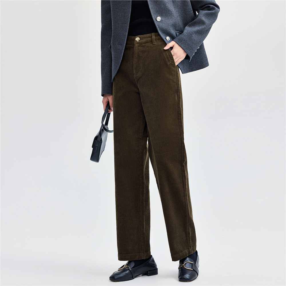 佐丹奴裤子女新款纯棉灯芯绒复古通勤女裤口袋休闲长裤女05414676