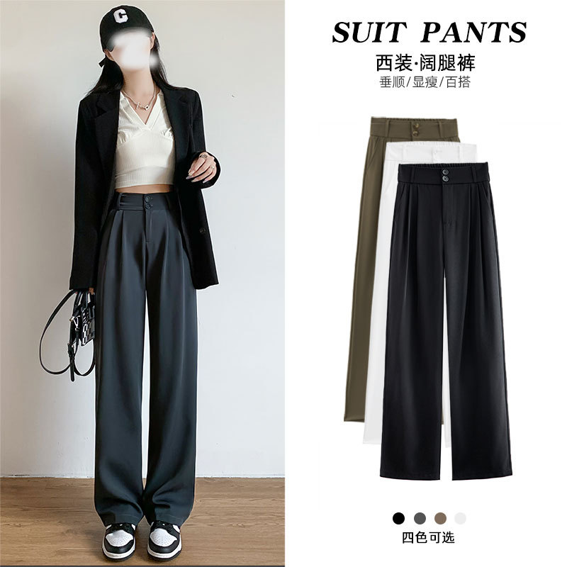 西装阔腿裤女夏季薄款梨形身材高腰显瘦垂感黑色休闲春秋阔腿裤子
