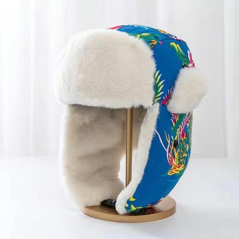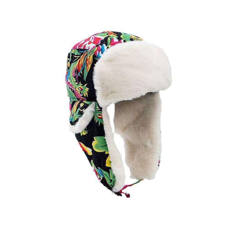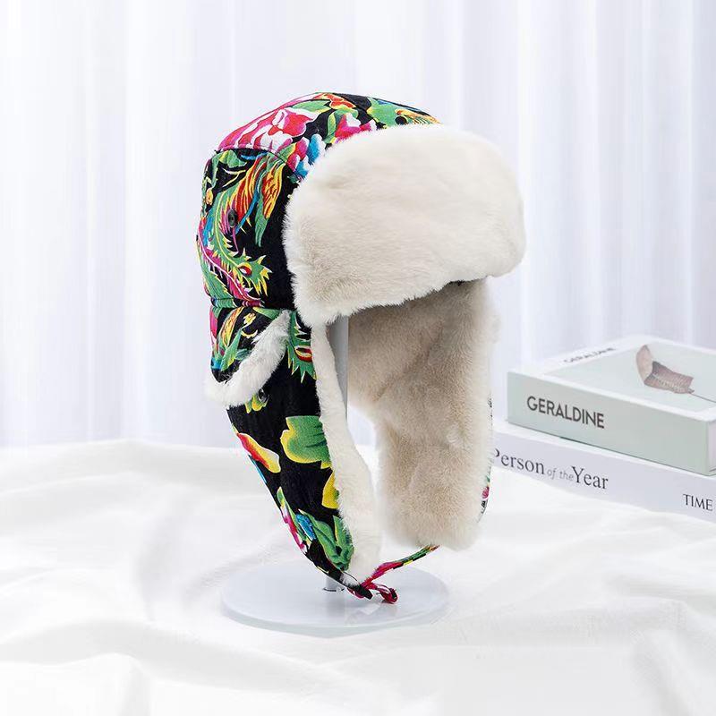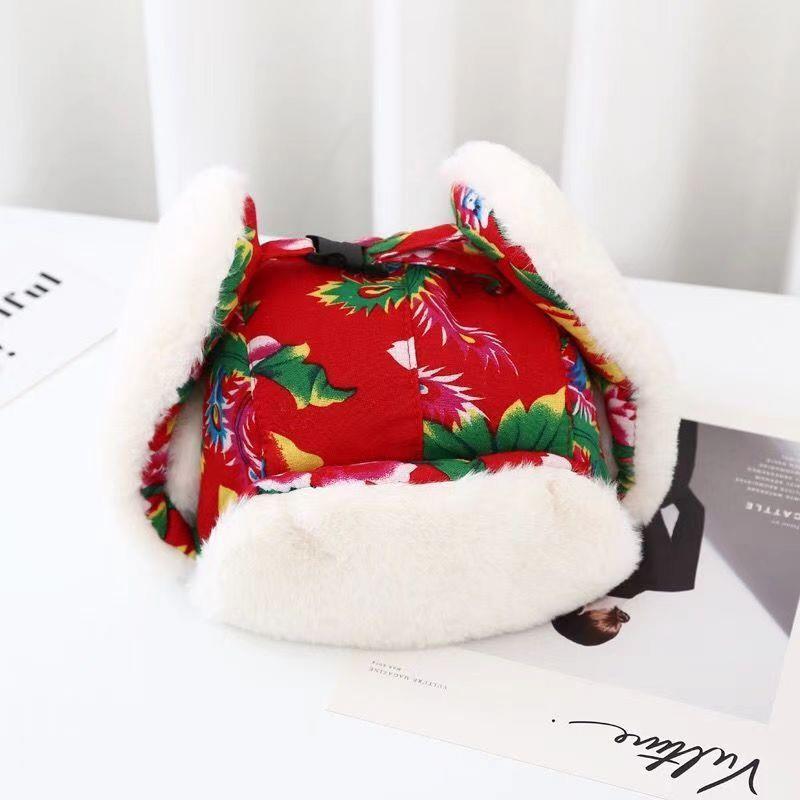 雷锋帽女冬季保暖护耳东北大花布棉帽子男复古民族风儿童火车头帽
