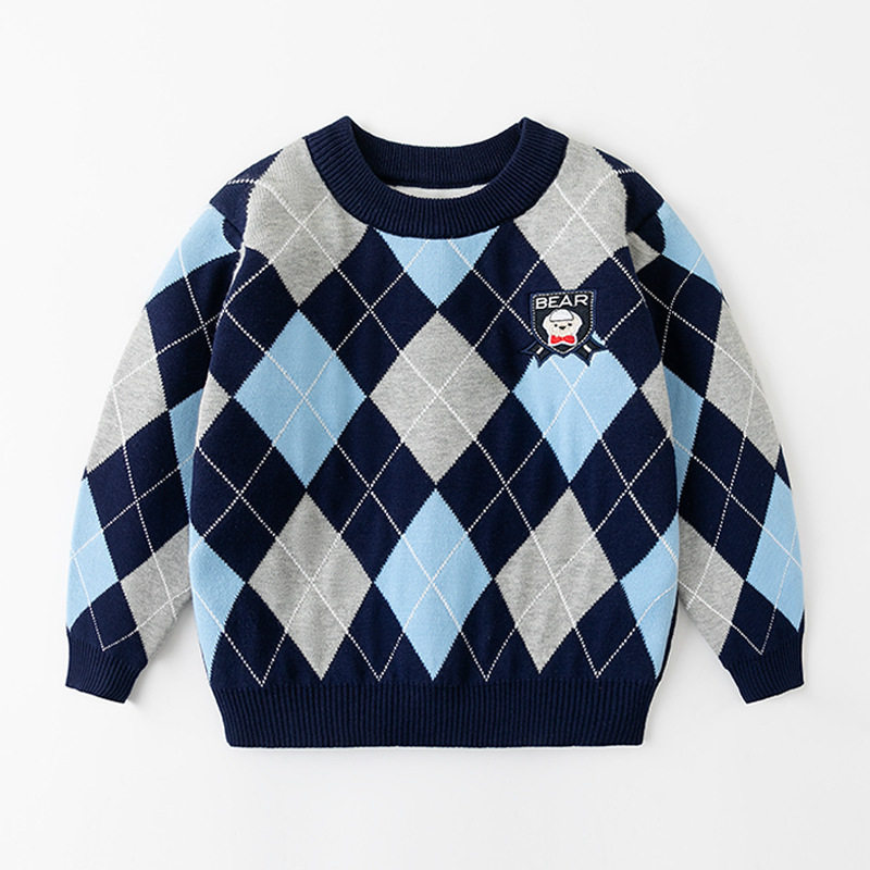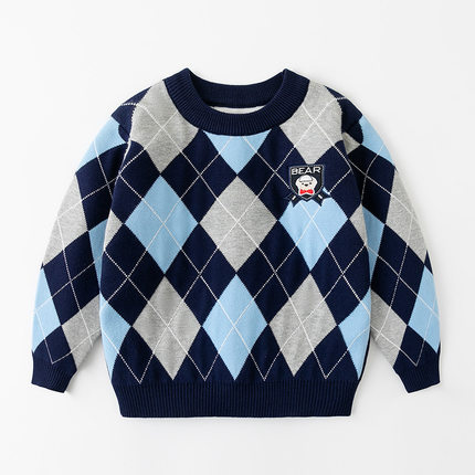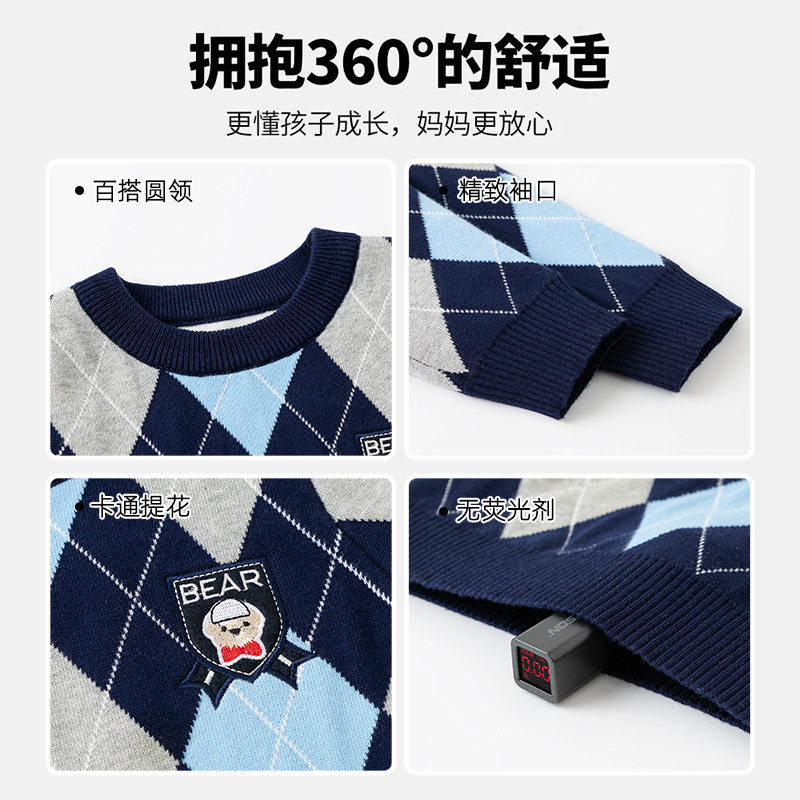 批发童装学院风毛衣2025秋冬新款儿童圆领套头上衣男童洋气针织衫
