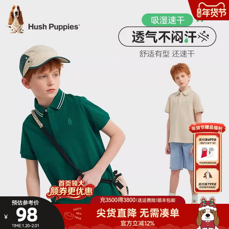 暇步士童装男童速干短袖夏装新品大童T恤户外儿童休闲polo衫