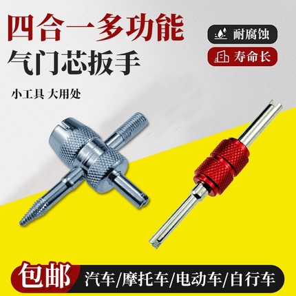 汽车轮胎内胎自行车电动车气门嘴放气四合一多功能气门芯扳手工具