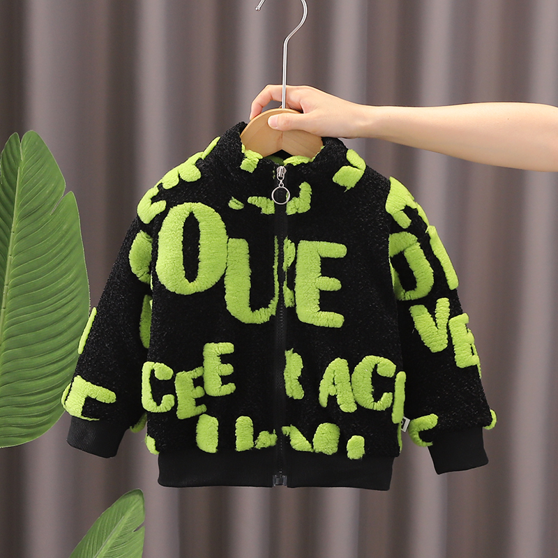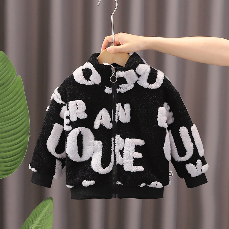宝宝冬季加绒加厚外套洋气时髦男童秋冬装保暖上衣婴儿童毛毛衣潮