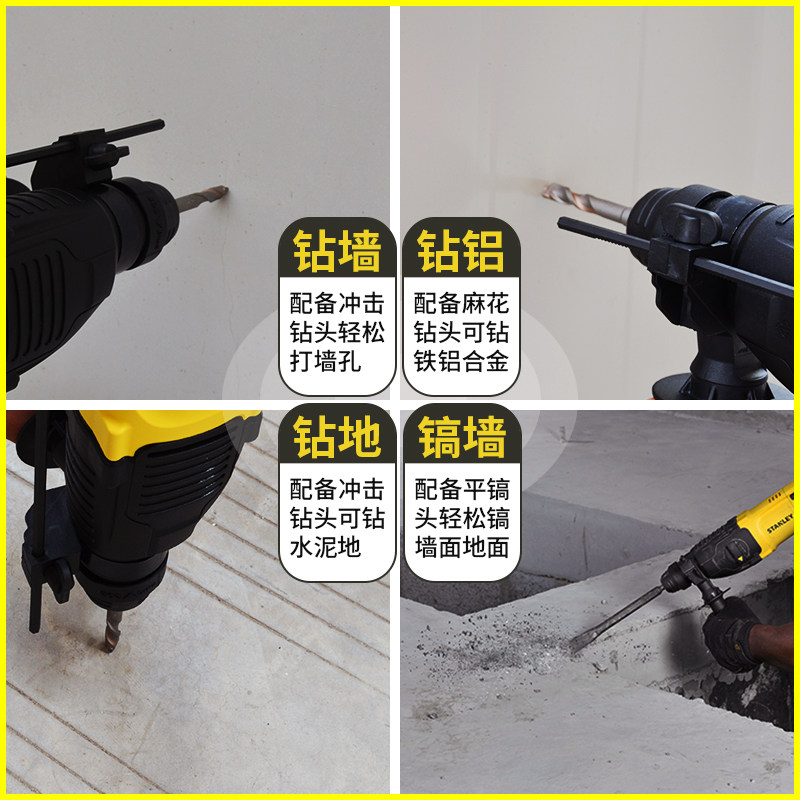 史丹利轻型电锤装修家用电钻电镐打孔混凝土插电大功率SHR263K