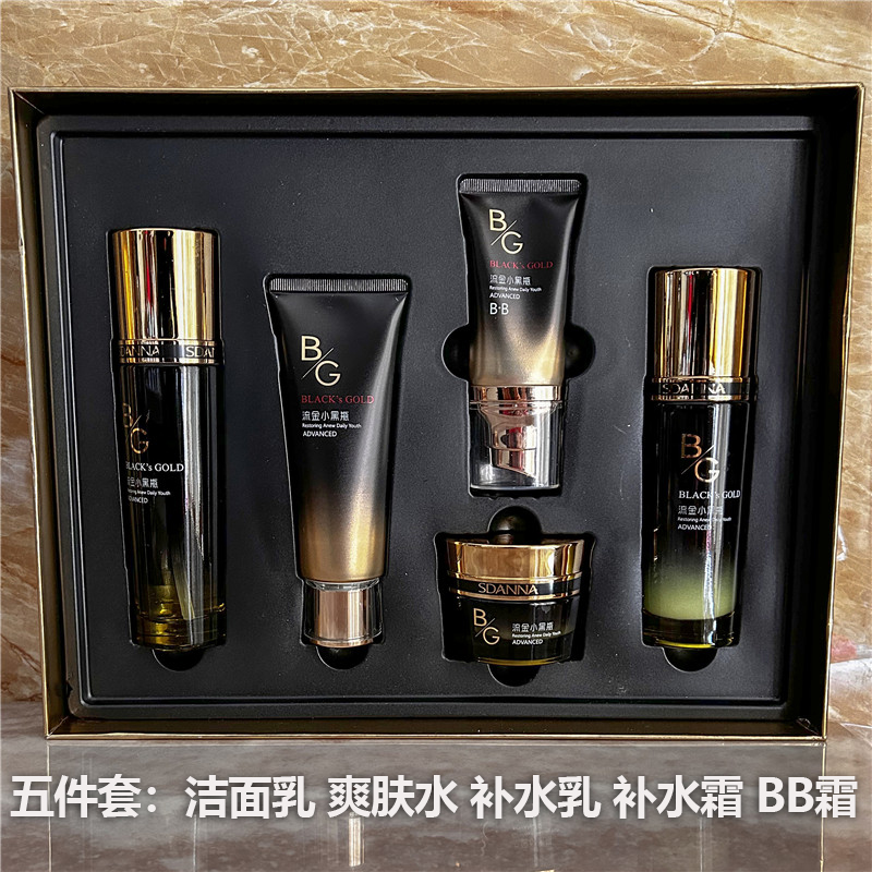 圣丹娜流金小黑瓶焕采补水保湿紧致抗皱护肤品套装柔肤水乳霜