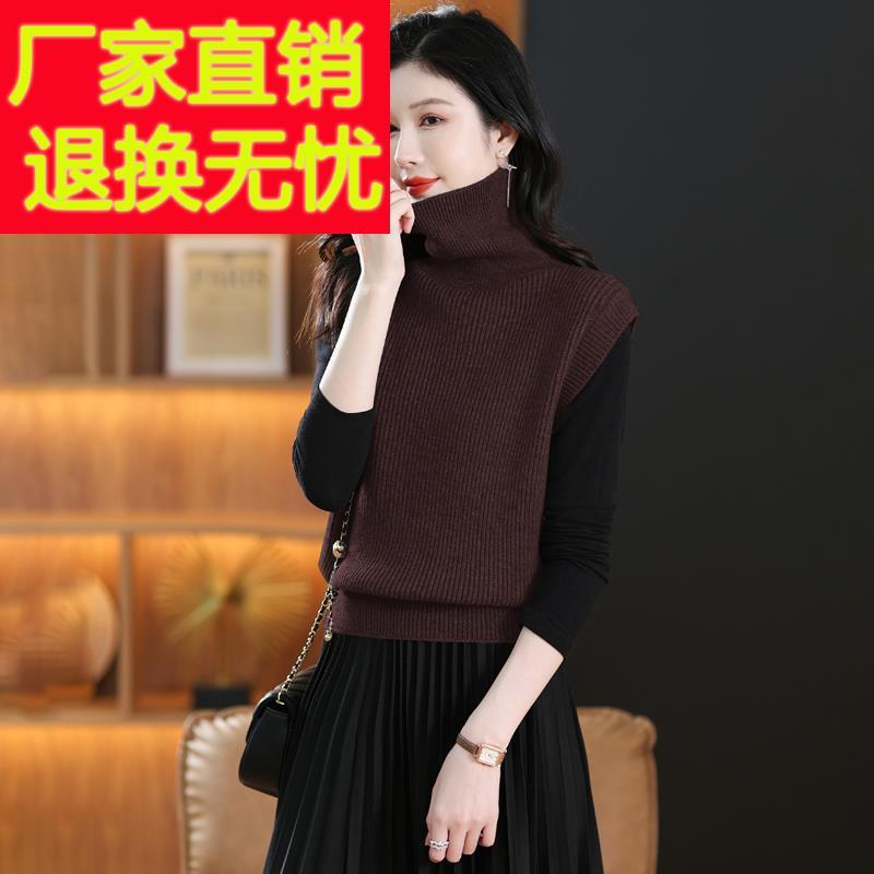 高领毛衣背心女士秋冬季无袖针织上衣纯色叠穿马甲洋气打底羊毛衫