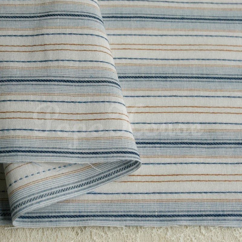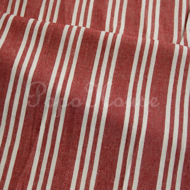 蓝骊布艺 复古红蓝文艺范条纹棉麻混纺布料 桌布门帘茶席背景面料