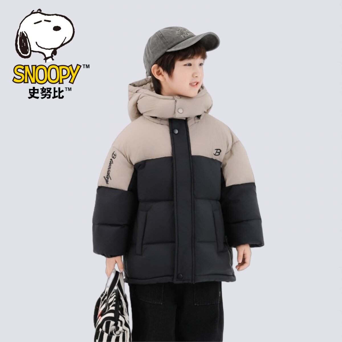 史努比男童羽绒服2025新款冬季拼色加厚90白鸭绒儿童装短款外套潮