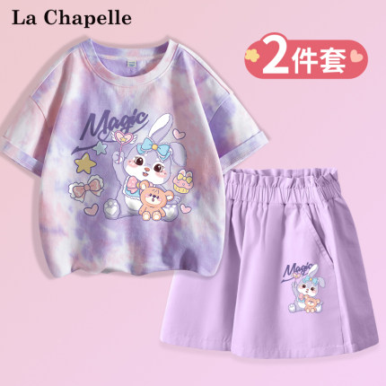 拉夏贝尔女童套装2025新款儿童短裤女大童装夏季纯棉裤子女孩夏装