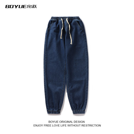 春秋季ins潮流纯色抽绳牛仔裤宽松阔腿裤简约百搭哈伦裤男束脚裤