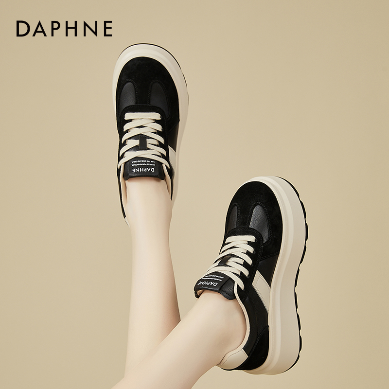 达芙妮真皮厚底板鞋女2025新款秋季8CM内增高女鞋复古运动德训鞋