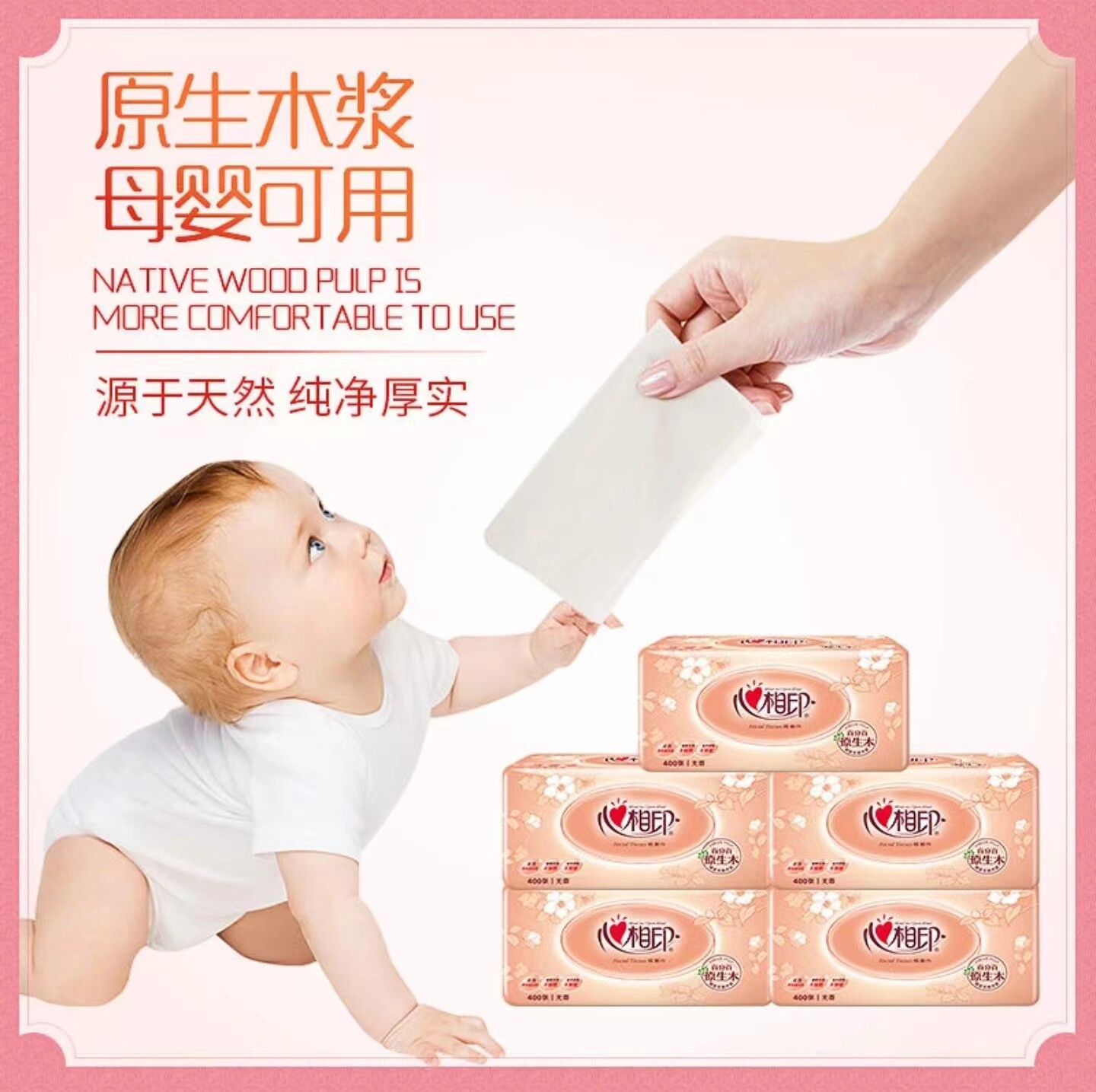 200抽2层3包抽纸心相印无压花
