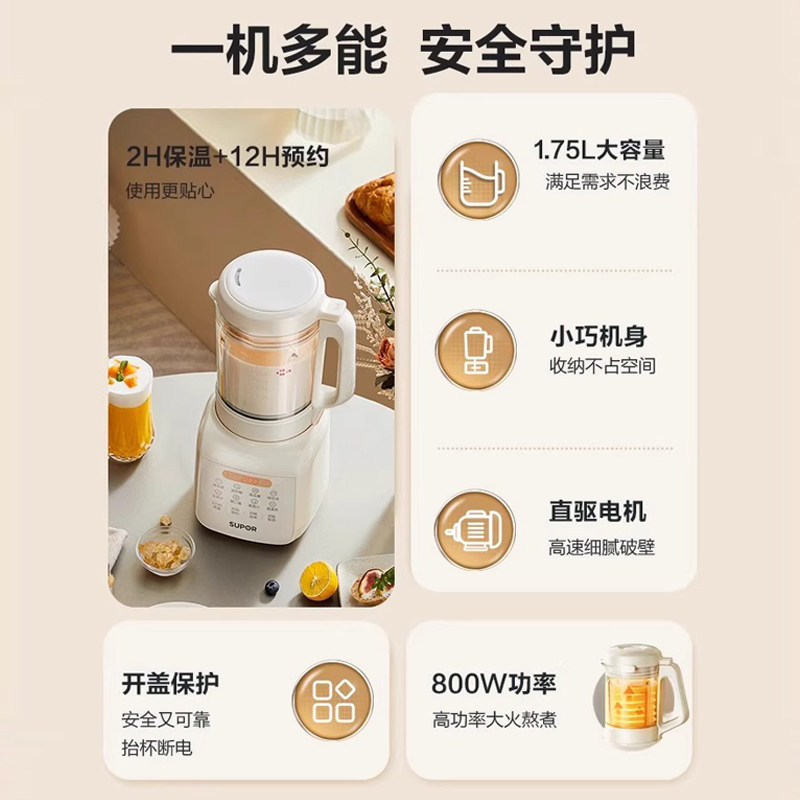 苏泊尔破壁机豆浆家用全自动轻音多功能料理机SPT211S
