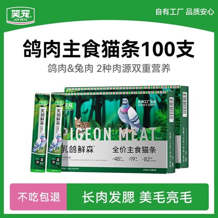 笑宠乳鸽鲜森全价主食猫条猫粮成猫幼猫湿粮非猫咪零食100支整箱