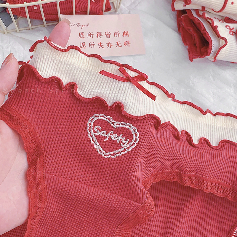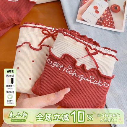 「甜心锦鲤」好运红色内裤女生纯棉本命年新款10A类抗菌少女可爱