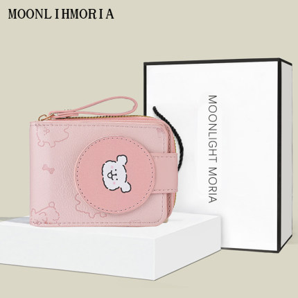线条小狗2025新款韩版简约短款钱包多卡位皮夹零钱包女士生日礼物