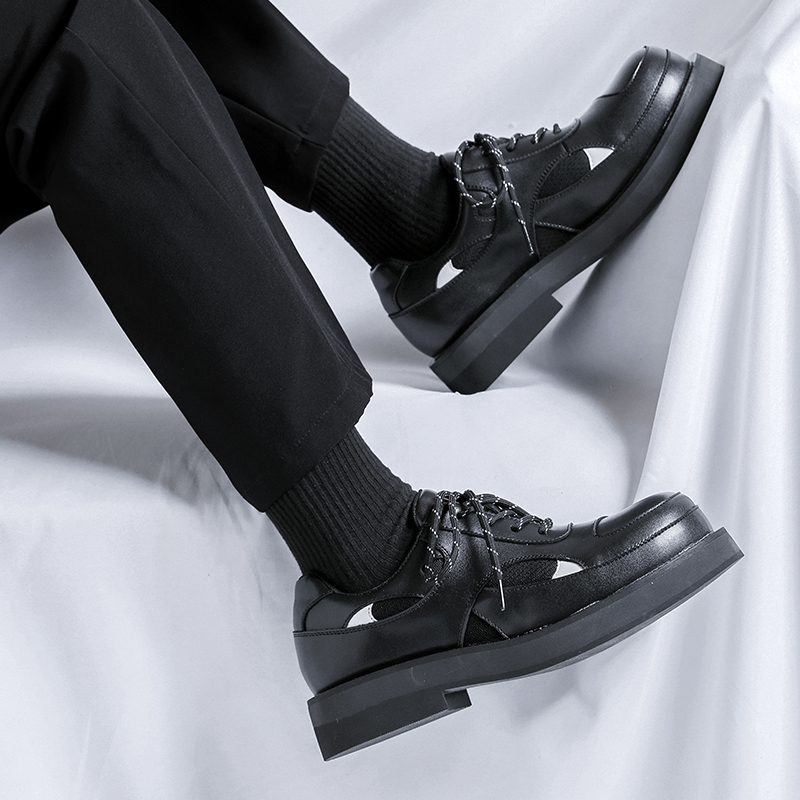 春季透气皮鞋男大头休闲高级感厚底增高小众原创德比鞋发型师潮鞋