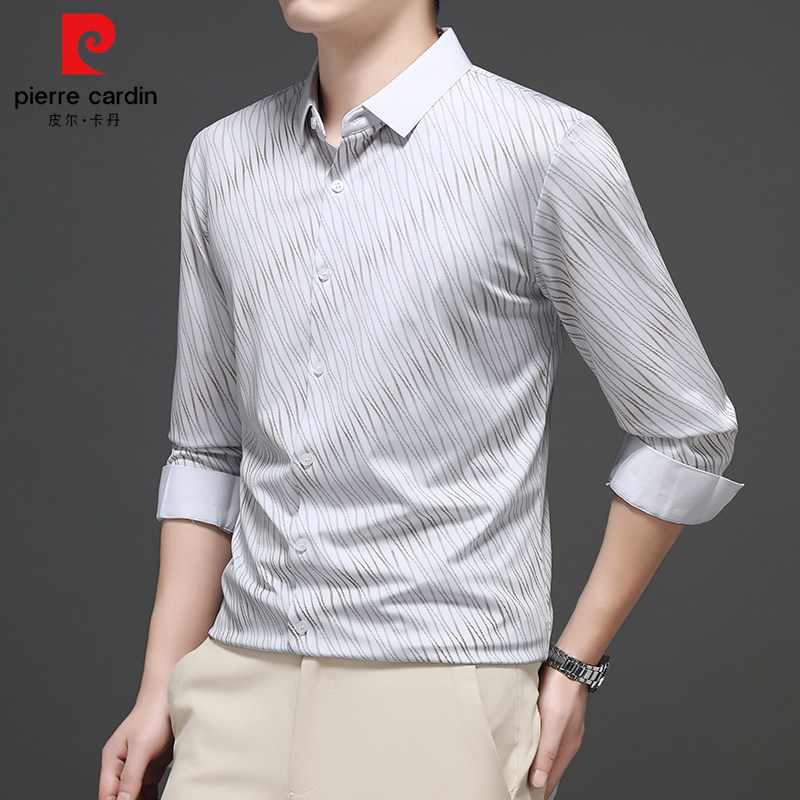 【品牌皮尔卡丹】男士条纹长袖高端衬衫2025秋季内搭潮流衬衫