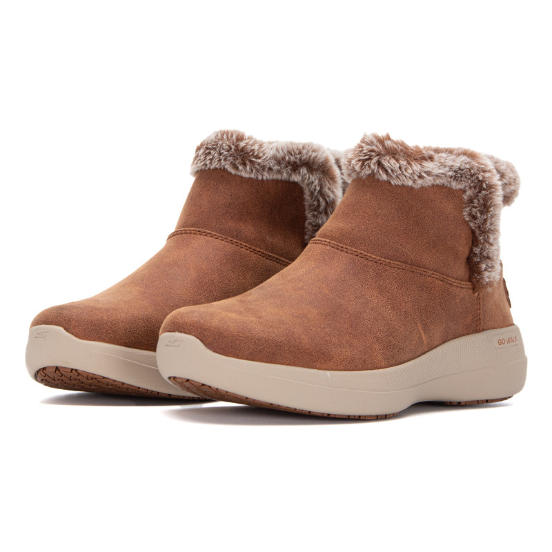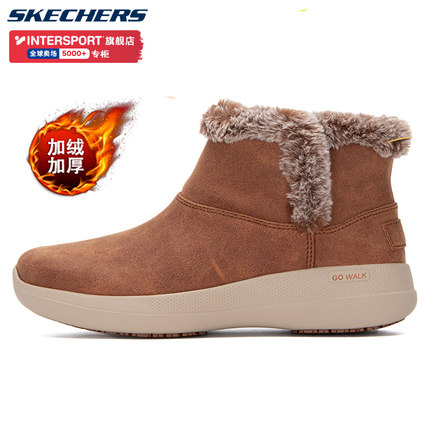 斯凯奇加绒女鞋冬季新款高帮雪地靴加厚保暖运动鞋棕色休闲鞋棉鞋