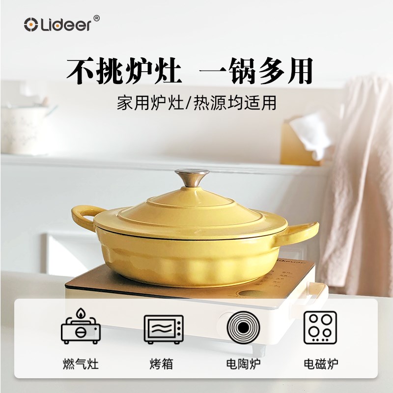 立德尔珐琅锅家用炖锅铸铁锅焖锅海鲜锅汤锅炖锅不粘锅炖盅电磁炉