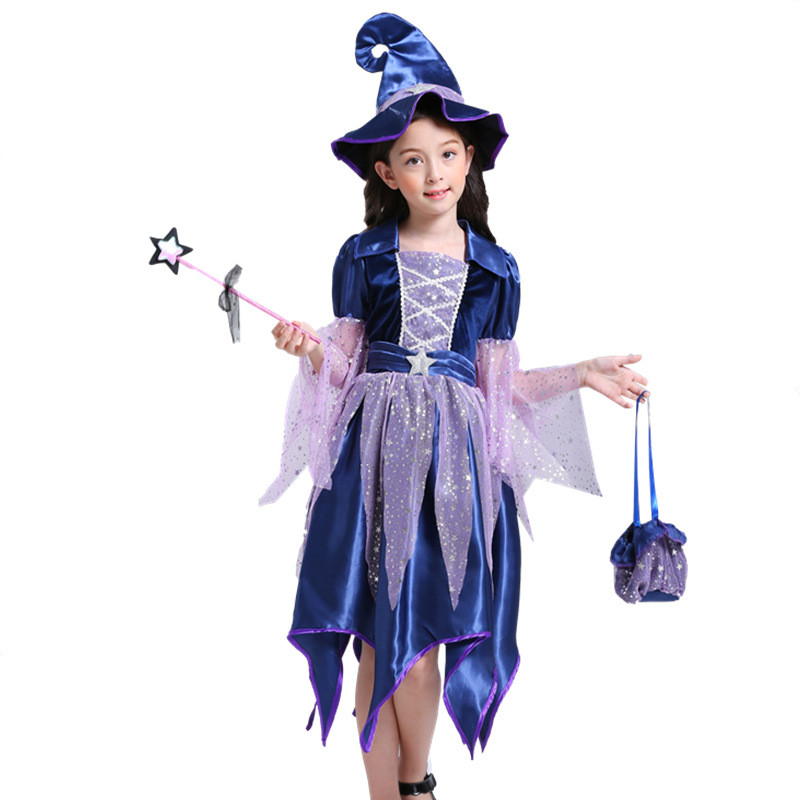 万圣节儿童女巫cosplay表演连衣裙化装舞会派对巫婆吸血鬼演出服