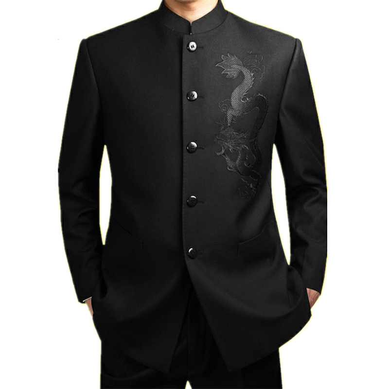 男士中青年中山装套装修身中华立领西服套装演出新郎结婚礼服唐装