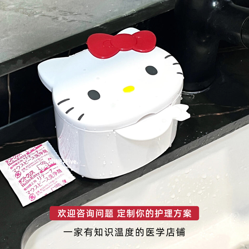 novopin日本HelloKitty牙套清洁盒隐形假牙便携收纳清洁清洗片